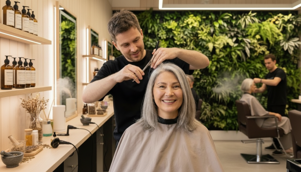 It can also help to get professional advice. Colourists now use plant-based glosses and low-impact dyes to mix grey hair. Using cocoa or tea masks at home keeps results longer and cuts down on chemical stress, which means you don’t have to go to the salon as often. Testing on a small, hidden area first makes sure the hair reacts well.