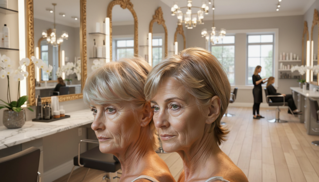 If you ask any experienced hairstylist who works with women over 60, they’ll all say the same thing when the door opens: deep, monochrome dark brown on very fine hair. It looks stylish and dramatic on a color chart. It often looks harsh on a real face with soft skin and delicate features.