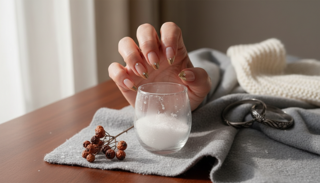 A little bit of iridescence can make winter feel less dull right away. Kao says, “Try a full chrome or metallic base with delicate accents.” “Micro stars or small patterns give the shine a controlled and editorial feel while adding personality.”
